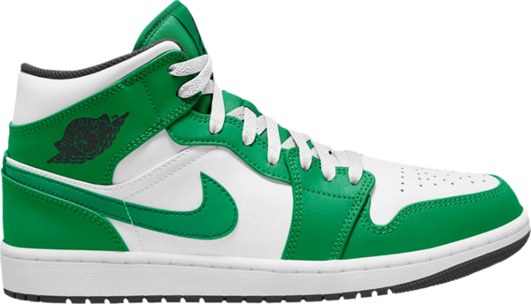 The Air Jordan 1 Mid Lucky Green applies classic two-tone color blocking to a timeless silhouette modeled after Peter Moores original 1985 design. The leather upper combines a crisp white base with emerald overlays and a color-matched Swoosh. A Jumpman icon adorns the woven tongue tag, while a retro Wings logo is stamped in black on the lateral collar flap. The mid-top rides on a textured white midsole, fitted with encapsulated Air-sole cushioning and supported by a black rubber outsole.
