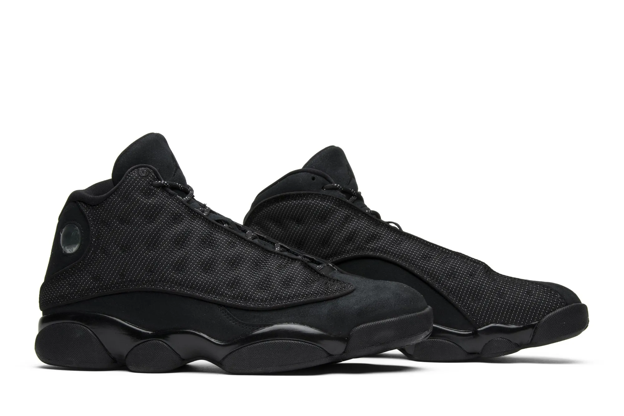 The Air Jordan 13 Retro ‘Black Cat’ showcases a monochromatic finish that plays off one of Michael Jordan’s many nicknames. The black suede upper is accented with a holographic cat eye and reflective detailing on the sneaker’s mesh overlays and rope laces. A glossy finish is applied to the matching black Phylon midsole, which houses Zoom Air units in the heel and forefoot. The 13’s signature panther paw outsole features herringbone traction for maximum grip.